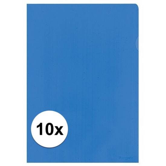 10x Insteekmap blauw A4 formaat 21 x 30 cm. L-map van stevige kwaliteit transparant PP 120 mµ, generfde uitvoering, copysafe en antistatisch. De map is aan de boven- en rechterzijde open en is voorzien van een duimgreep. Kleur blauw. A4 formaat. U ontvangt 10 mapjes.