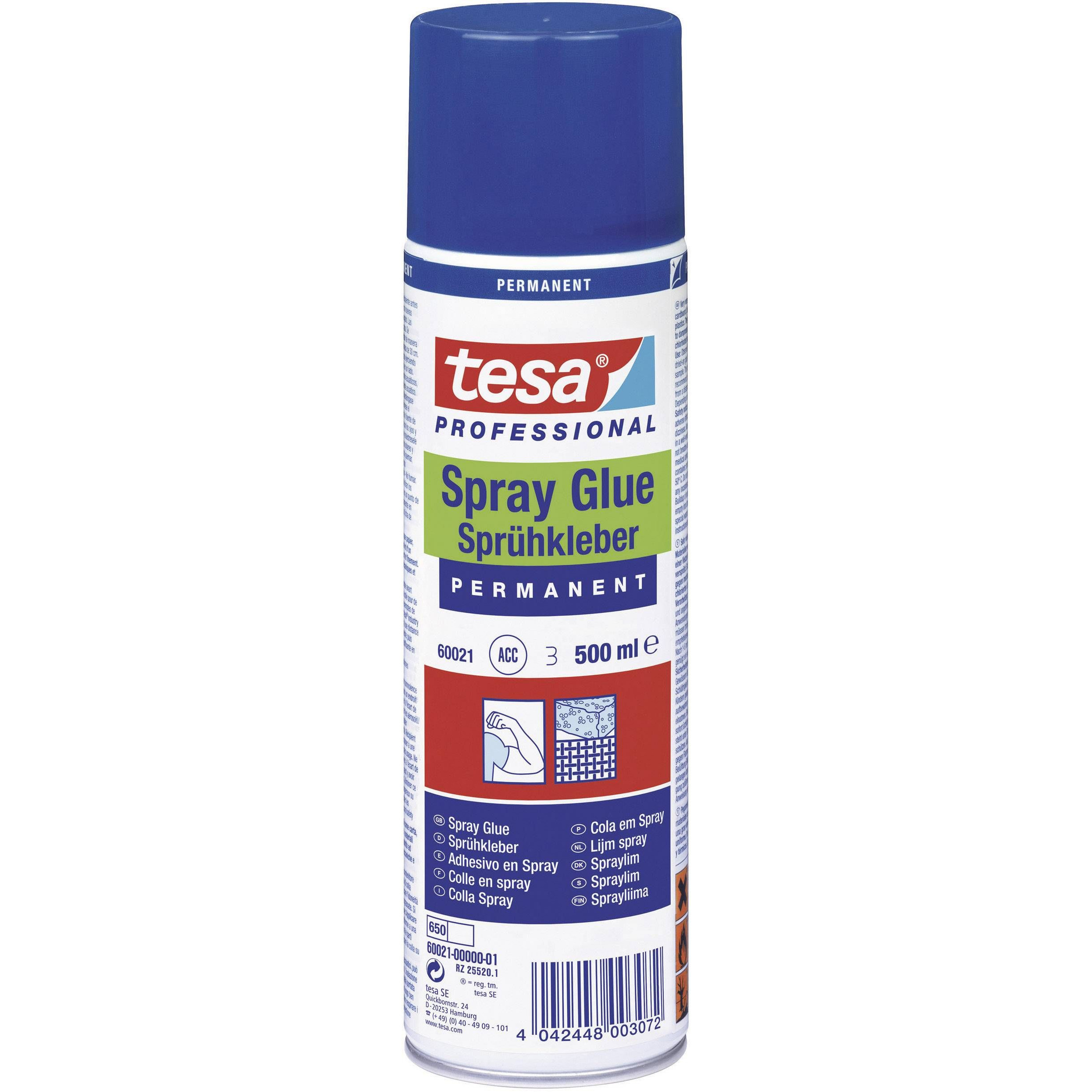 Een spuitbus/spray met lijm van het merk Tesa. De lijm is bijvoorbeeld ideaal om mee te knutselen. Geschikt voor materialen als stof, plastic, karton, foam, rubber, isolatiemateriaal en vinyl, maar ook het verlijmen van leer op rubber en metaal op hout. De spray hoeveelheid kan worden aangepast van laag naar hoog en de richting kan zowel horizontaal als verticaal worden ingesteld. Temperatuurbestendig van -30?C tot +80. Bestand tegen mechanische en thermische belastingen.