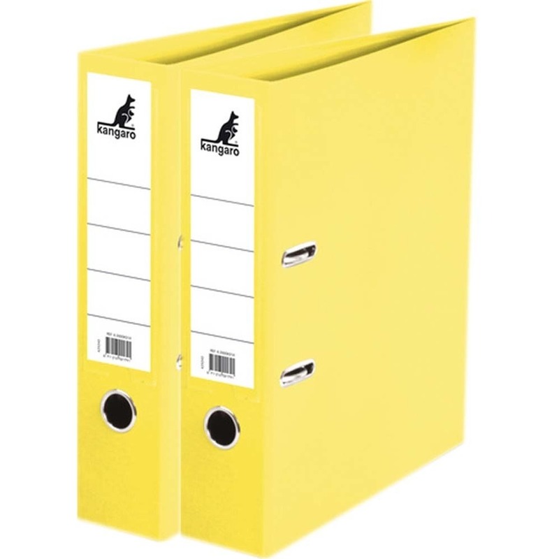 2x Ringband mappen/ordners geel 75 mm A4. Ringbandmap/ordnermap voor het opbergen van papieren/documenten/facturen in A4 formaat. De map is geheel omplakt met kunststof, waardoor deze vuil- en vochtafstotend is. Hefboommechaniek met drukspanner (2 U-ringen), een duimgat/grijpgat en een vervangbaar etikethouder. Formaat: 31,5 x 28,5 x 7,5 cm. Handige kantoorartikelen voor het opbergen van documenten zoals dossiers of facturen. U ontvangt 2 stuks.