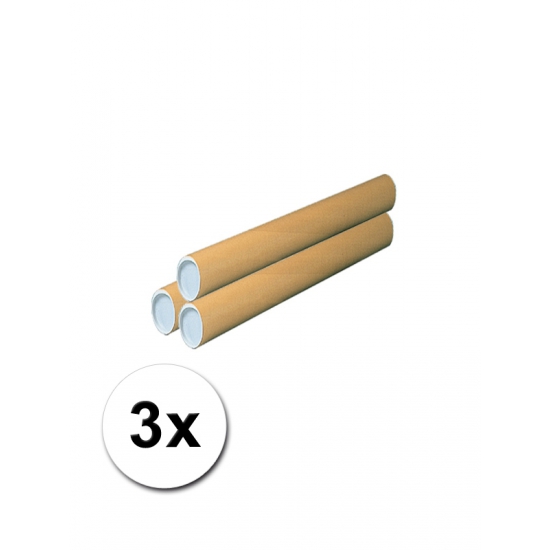 Poster/Hobby kokers 43 x 6 cm, 3 stuks. Deze kokers zijn gemaakt van stevig karton in het bruin. Een koker kan worden afgesloten doormiddel van de 2 bijgeleverde witte dopjes. Geschikt voor A2.