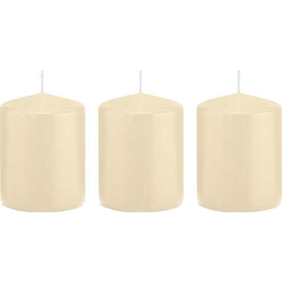 3x Cremewitte cilinderkaarsen/stompkaarsen 6 x 8 cm 29 branduren. Rechte cilinderkaarsen/stompkaarsen zonder geur met gladde afwerking in de kleur cremewit. U kunt meerdere kaarsen gebruiken als sfeermakers, bijvoorbeeld tezamen gepresenteerd op een kaarsenplateau.