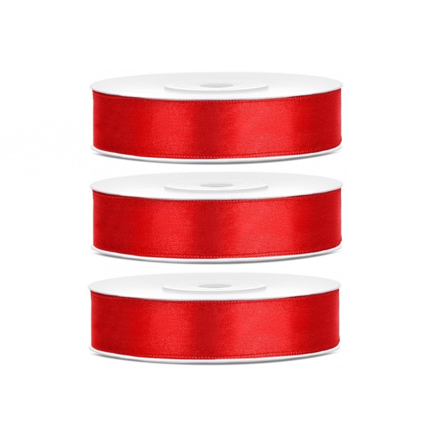 3x Hobby/decoratie rode satijnen sierlinten 1,2 cm/12 mm x 25 meter. Rode satijnlinten op rol.