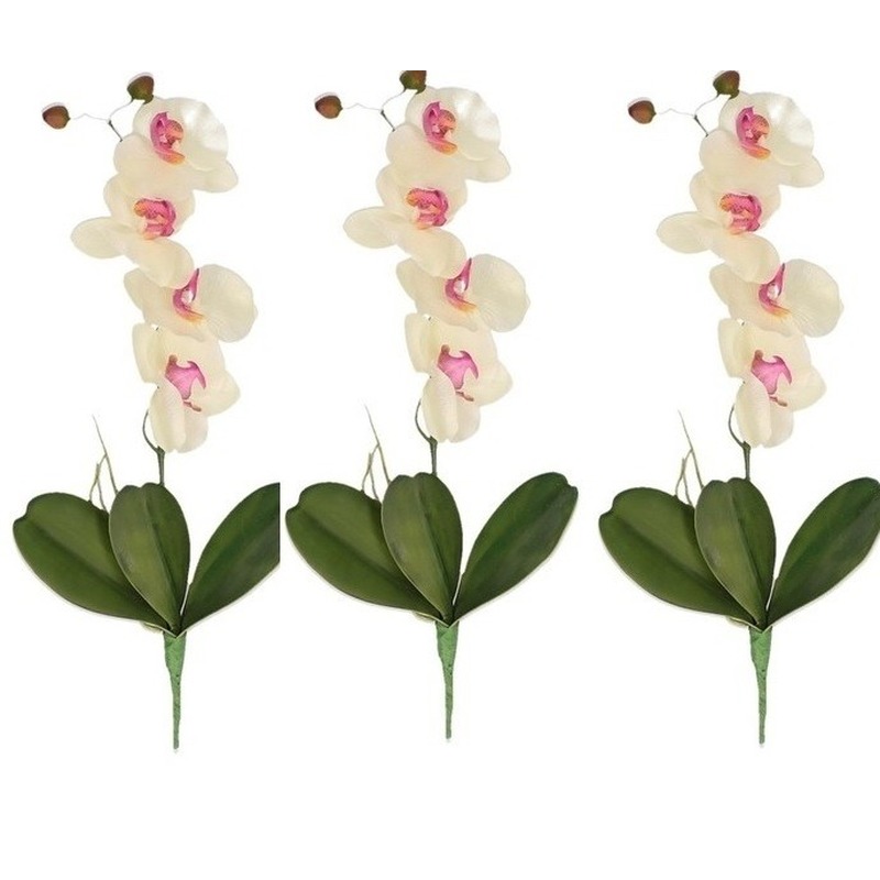 3 Stuks kunstbloemen orchidee takken wit met roze. Orchidee takken met 4 bloemetjes in de kleur wit met roze. De tak is ongeveer 44 cm lang.
