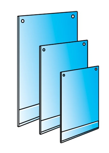 Plakkaathouder met ophangogen A2. Transparante plakkaathouder van hard ontspiegeld PVC met een dikte van 0,4 cm in A2 formaat (59,4 x 42 cm). De plakkaathouder heeft twee boorgaten met een doorsnede van 6 mm.