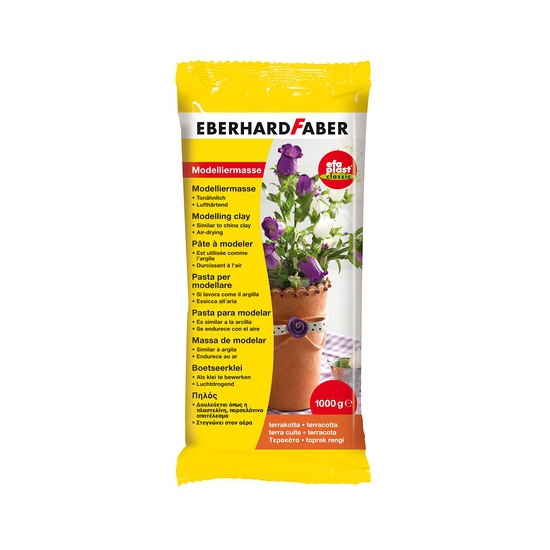 Boetseer klei/gips terracotta 1 kilo. Deze verpakking bevat 1 kilo zelf hardende terracotta boetseer klei. De klei krimpt bij harding 5 tot 7 %. Wordt geleverd in gemetalliseerde folieverpakking welke langere houdbaarheid garandeert. Hobby artikelen.