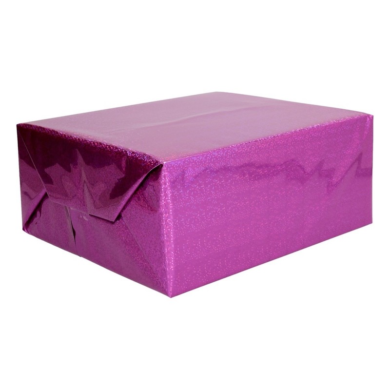 Rol hobbyfolie in holografische metallic paarse kleur. De folie is dubbelzijdig bedrukt, achterkant is zilver, en u krijgt een willekeurige opdruk, sterren of stippen. Afmeting: ca. 70 x 150 cm.
