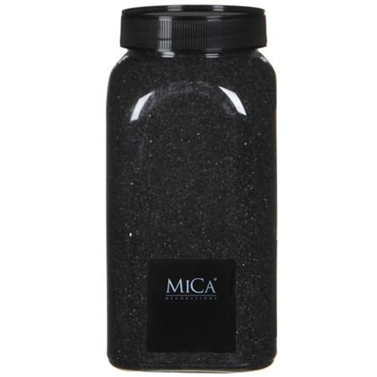 Hobby/decoratiezand antraciet grijs 650 ml. Potje gevuld met donker grijs/antraciet decoratief zand. Formaat potje: 7,5 x 7,5 x 16 cm. Inhoud: 650 ml. Materiaal: kunststof Kleur: grijs. Merk: Mica. Hobby/decoratie materiaal.