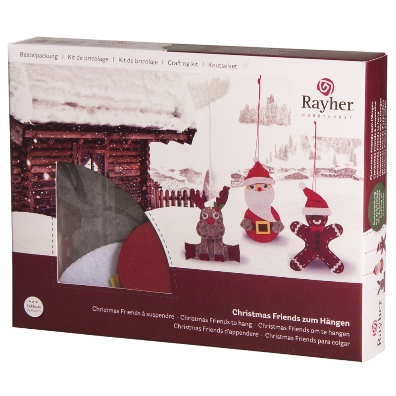 Kerst hobbyset kersthangers. Set voor het maken van 3 figuren: een rendier, een kerstman een een hulpje taaipop. De figuren kunnen worden opgehangen in de boom of krans. Dit hobby pakketje bestaat uit alle materialen en de handleiding die nodig zijn om deze kersthangers te maken. De kersthangers zijn ongeveer 8 cm groot. Deze knutselset is geschikt voor volwassenen. Verdere benodigdheden die niet inbegrepen zijn: naald, schaar en lijm.