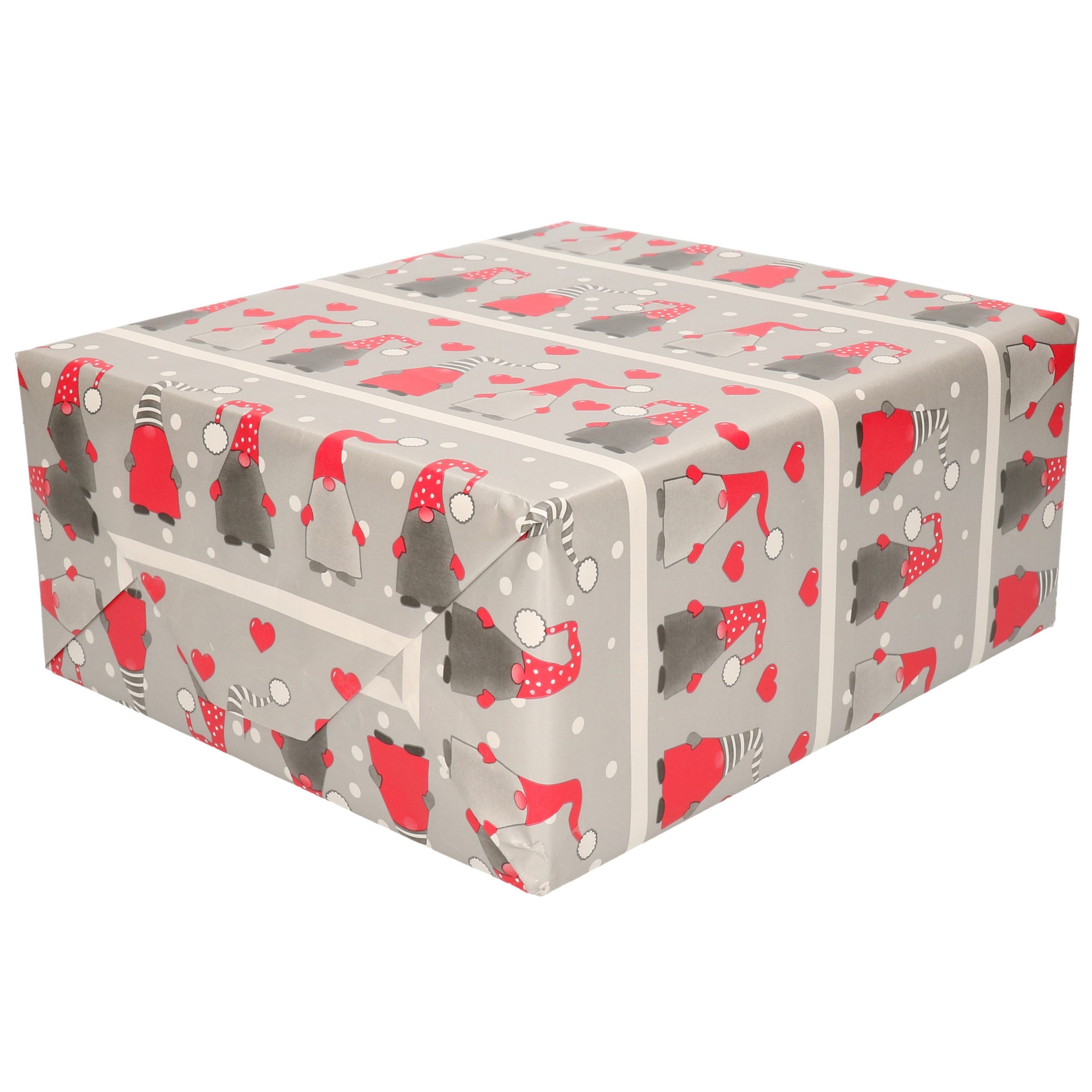 Kerst inpakpapier/cadeaupapier met gnomes/dwergen 200 x 70 cm.