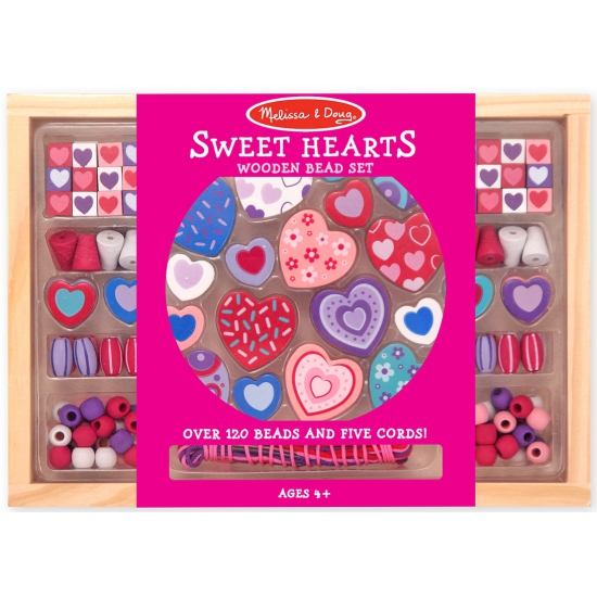 Houten speelgoed kralenset Sweet hearts. Design mooie houten sieraden! Deze schattige kinder kralenset beschikt over mooie hartvormige parels in verschillende maten. Diverse samensmeltende kleuren kralen zullen ervoor zorgen dat jonge sieraden makers de mooiste sieraden kunnen maken voor elke gelegenheid. Vijf kleurrijke snoeren en meer dan 150 houten kralen voor eindeloze combinaties. Formaat van de doos: ongeveer 25 x 18 x 2,5 cm. Geschikt voor kinderen vanaf 4 jaar. Zelf sieraden maken van houten kralen – DIY sieraden set voor meisjes.