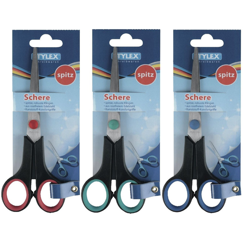 Een hobby/knutsel schaar met een scherpe spitse punt. De schaar heeft een lengte van ca. 17 cm en een anti-slip handvat. Materiaal: metaal/kunststof. U ontvangt een willekeurige kleur (rood, groen of blauw), bij meerdere stuks is het mogelijk dat u dezelfde kleuren ontvangt. U ontvangt 1 stuks. Hobby/knutselbenodigdheden scharen met spitse punt.