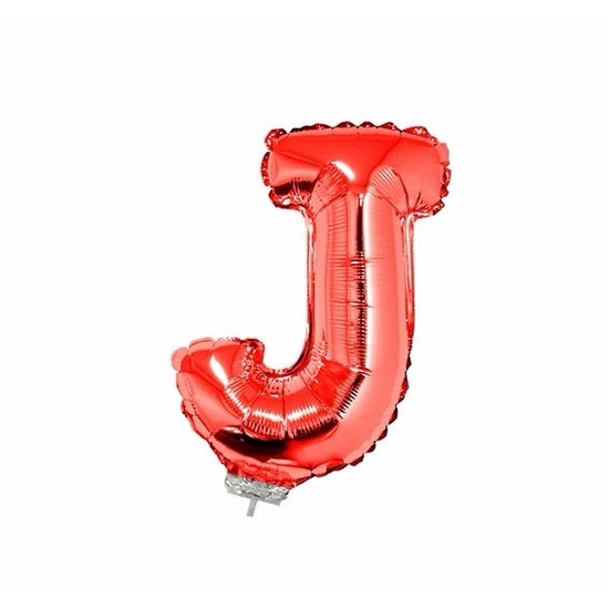 Rode opblaas letter ballon J op stokje 41 cm. Rode letter ballon J van ongeveer 41 cm. Incl. stokje. Alleen geschikt voor lucht.