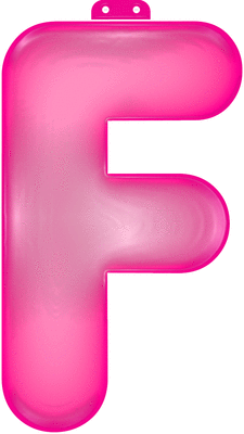 Roze opblaas letter F. Deze roze opblaasbare letter F is 35,5 cm groot. De letter heeft bovenaan gaatjes waardoor hij makkelijk op te hangen is. De letter is gemaakt van pvc plastic en is in alle letters en cijfers verkrijgbaar.
