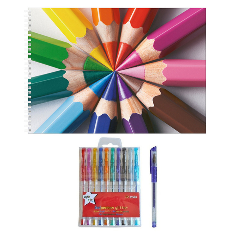 Schetsboek A4 formaat met 50 paginas met 10 gelpennen.