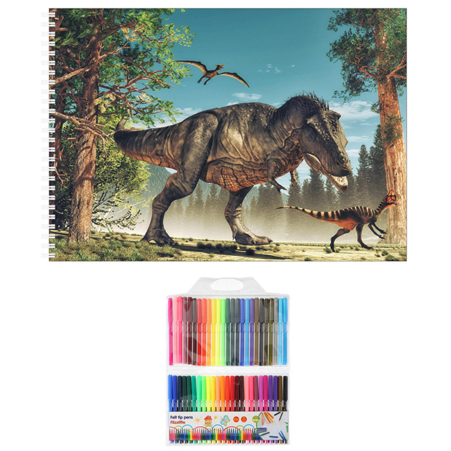 Schetsboek Dinosaurussen liefhebbers A4 50 paginas met 50 viltstiften