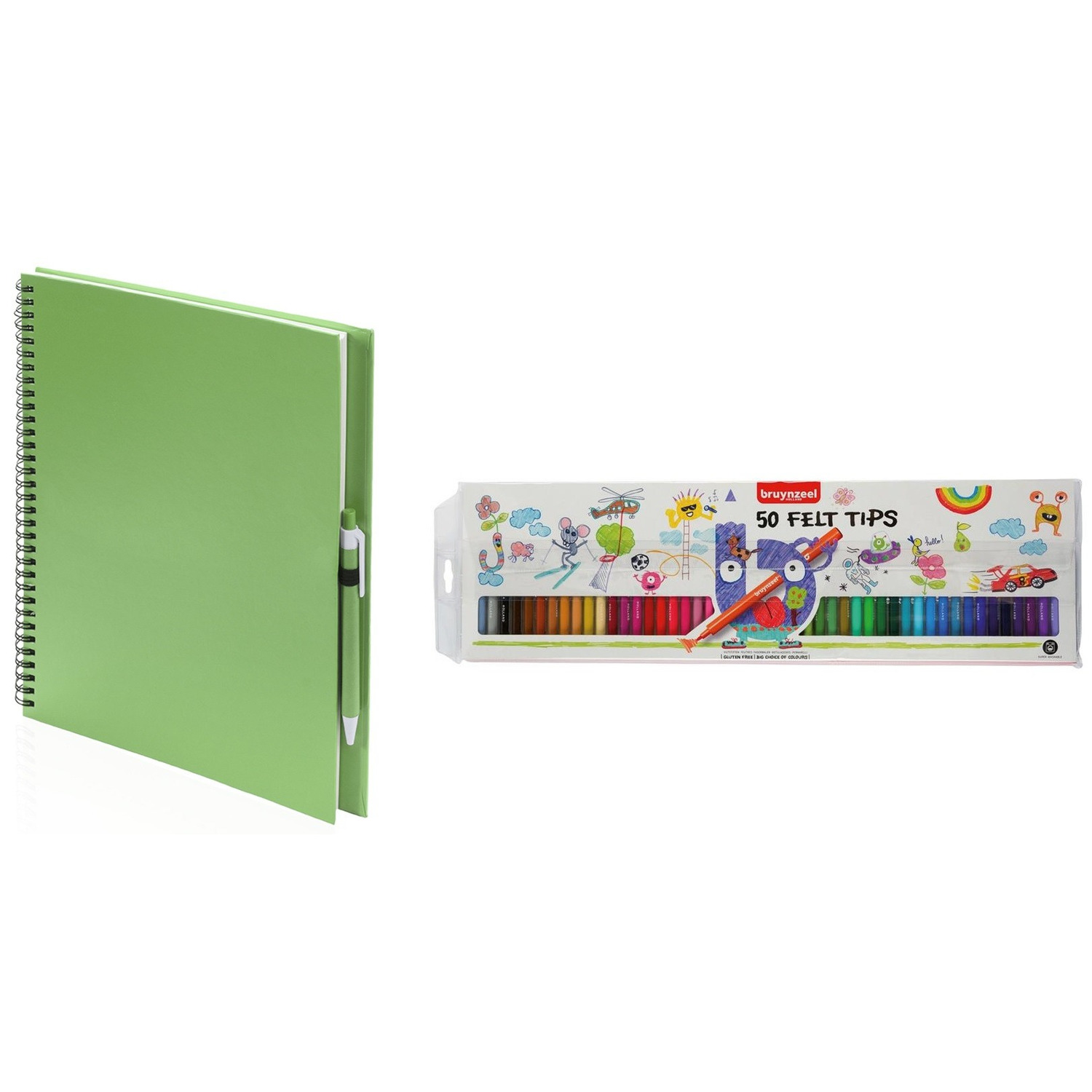 Schetsboek/Tekeningen maken luxe blok met 80x vellen wit papier met harde groene kaft en spiraal binding en een etui met 50 viltstiften. De afmetingen van het boekje zijn ongeveer 21 x 29 x 2 centimeter. Formaat: A4 papier. Super de luxe schetsboek/opschrijfblok/notitieblok voor kinderen en volwassenen. , Dit artikel bestaat uit:, 1x 50 stuks top kwaliteit viltstiften, 1x Schetsboek/tekenboek groen A4 formaat 80 vellen inclusief pen
