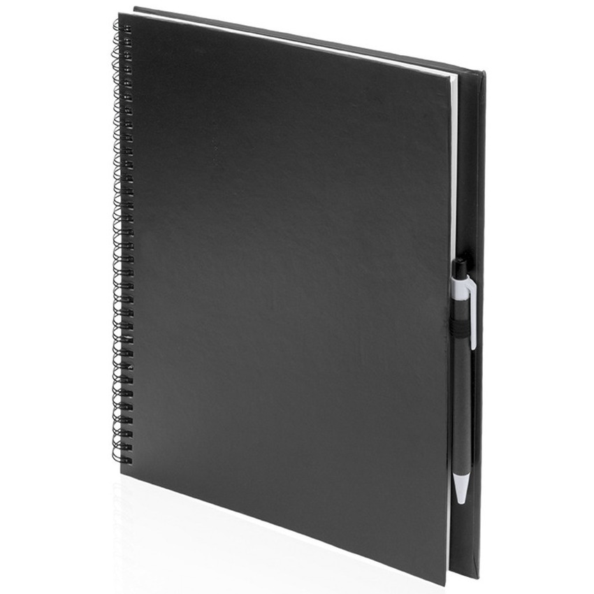 Schetsboek/Tekeningen maken luxe blok met 80x vellen wit papier met harde zwarte kaft en spiraal binding. Het tekenboek is inclusief een bijpassende pen. De afmetingen zijn ongeveer 21 x 29 x 2 centimeter. Formaat: A4 papier. Super de luxe schetsboek/opschrijfblok/notitieblok voor kinderen en volwassenen.