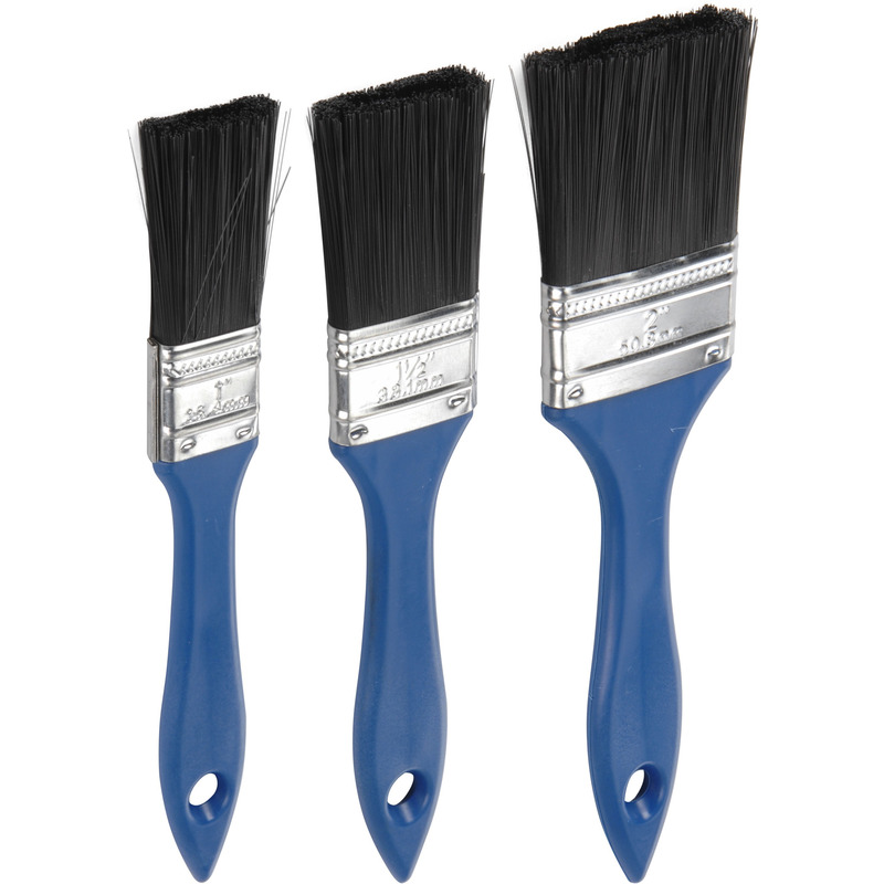Platte kwasten set voor al uw schilderwerk in huis, kantoor of werkplaats. De kwasten zijn ca 25, 38 en 50 mm breed. Zowel geschikt voor verf op waterbasis als op oliebasis. De haren zijn van kunststof. Formaat: ca. breedte 25 tot 50 mm.